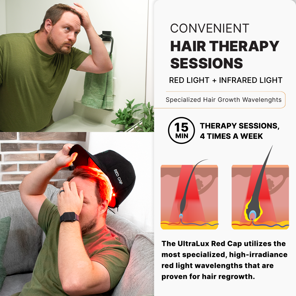 Revolutionize hair regrowth with red light therapy. The UltraLux Red Cap was meticulously designed to help you combat hair loss. We know how painful it is to lose hair, which is why we created this product — to reverse hair loss without relying on unknown chemicals and ineffective treatments.